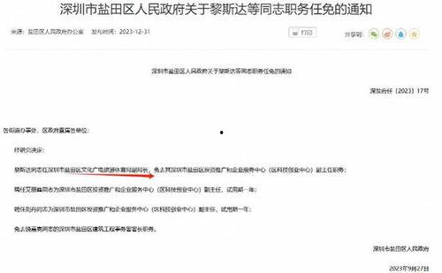 最近网络上可是炸开了锅,深圳市的最新任命消息成了大家茶余饭后的热门话题。这不,我就迫不及待地来给你揭秘一下这些新鲜出炉的任命动态,让你一睹为快!